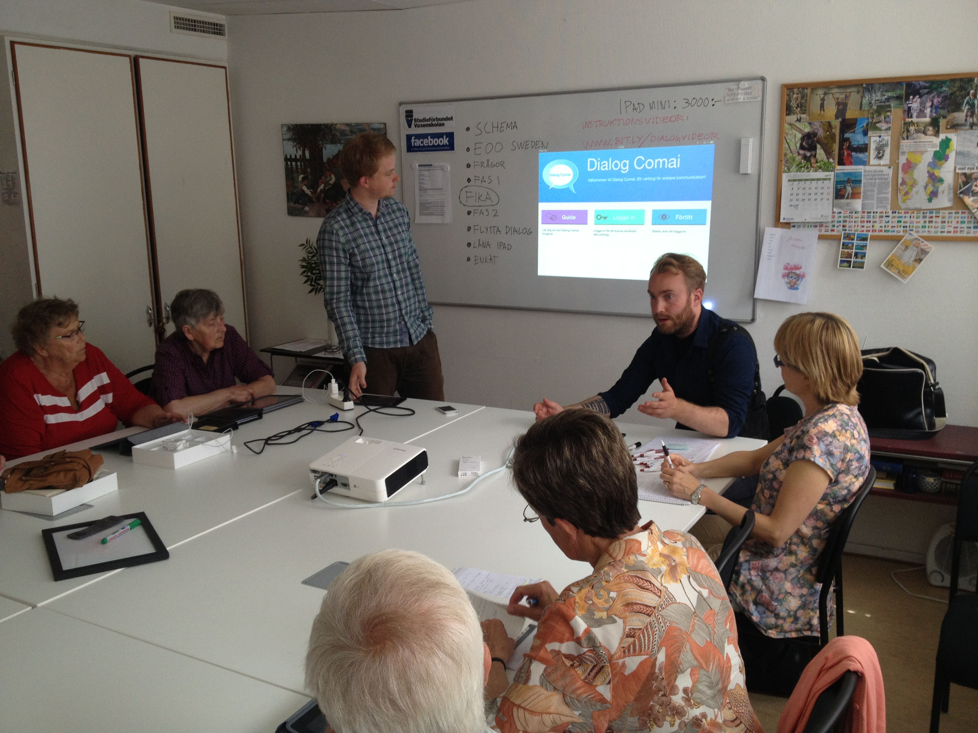 Nu var det dags för avslutning av pilotcirkeln. Till vårt avslutningsmöte fick vi besök av Sebastian och Alex, från EOO Sweden, vilka är personerna och skaparna bakom appen Dialog Comai. Vi fick även påhälsning av Ulf från Comai AB. Gästerna var intresserade av att delta i avslutningen för att träffa och höra hur deltagarna i pilotgruppen har upplevt arbetet med deras produkt – samt att finnas där för frågor och att samla in diverse synpunkter och respons.