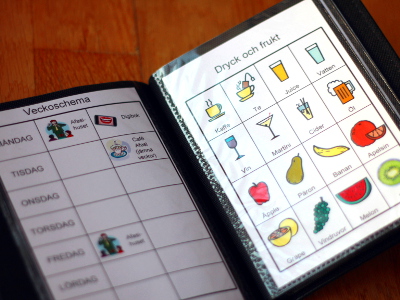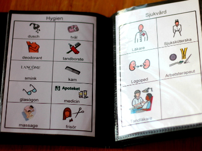 - Personlig information (Vem som äger boken, kort om afasi, hur boken fungerar)